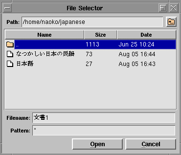 日本語のファイル名は、Photonシェル(pterm)では、入力および表示ができません。したがって、シェルでのlsコマンドの結果を日本語で表示することはできません。 ファイル・マネージャでは日本語のファイル名が使用できます。 |