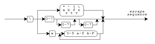 \n)\t)\a)\0)An escape sequence takes the form shown in the diagram.